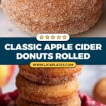 These Apple Cider Donuts are moist, flavorful cake donuts with warm spices like cinnamon and nutmeg, made with real apple cider and grated apple for a delicious autumn treat. They are fried to golden perfection and rolled in a cinnamon sugar mixture for a perfect balance of sweet and spice.
