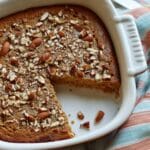 For holiday breakfasts, I’ve served this baked oatmeal in individual ramekins topped with whipped cream and toasted pecans—it looks fancy but is so easy. Alternatively, you can cut it into squares and serve warm with cute toothpicks as a grab-and-go breakfast treat for brunch parties.