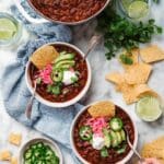 • Simmer uncovered: I’ve found this thickens the chili perfectly—just keep an eye to prevent sticking.