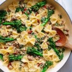 This Bow-Tie Pasta with Sausage and Broccoli is a quick and flavorful one-pan meal that combines tender Italian sausage, fresh broccolini, and sun-dried tomatoes in a creamy Parmesan sauce. Perfect for a hearty weeknight dinner, it delivers balanced flavors and textures in just 30 minutes.