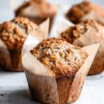 Absolutely! I’ve swapped in whole wheat flour with great results. The muffins turn out a bit denser and have a nuttier flavor, which is delicious, but just be sure to not overmix to keep them tender.