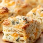 These Cheddar Garlic Butter Biscuits are flaky, cheesy, and bursting with garlic herb flavor. Perfectly golden and brushed with melted garlic butter, they make a delicious side for any meal or a savory snack.