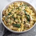 For special occasions, I’ve served this Chicken Spinach Alfredo Recipe in a hollowed-out parmesan wheel—it looks so impressive and the cheese melts into the pasta for extra flavor. Or try layering it in individual oven-safe ramekins topped with a sprinkle of mozzarella, then broil until bubbly and golden.