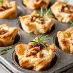 - Bake: Place the muffin pan in the preheated oven and bake for 18 to 20 minutes until the pastry is golden brown and the Brie is melted and bubbly.