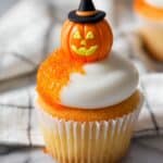 I love topping these mini cupcakes with orange sugar crystals for a subtle sparkle and crunch, plus little pumpkin icing decorations that give a playful Halloween touch. You can also add a tiny candy eyeball for extra spooky fun if you’re making these for kids’ parties!