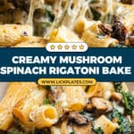 A rich and creamy mushroom pasta bake featuring roasted Baby Bella mushrooms, tender rigatoni, fresh baby spinach, and a luscious blend of ricotta, Fontina, and Parmigiano Reggiano cheeses. This comforting casserole is infused with fresh thyme and garlic, baked to golden perfection for a hearty and satisfying meal.