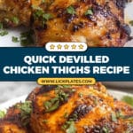 For special occasions, I’ve served the devilled chicken sliced over a bed of fluffy couscous with toasted almonds and pomegranate seeds — it looks stunning and adds texture. Or try stacking the grilled thighs on skewers with peppers and onions for a colorful, fun presentation perfect for summer BBQs.