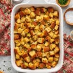 - Gluten-free bread: Choose a sturdy loaf that’s not too soft to get nice toasted cubes; homemade or store-bought both work.