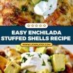 I love topping my Enchilada Stuffed Shells with creamy avocado slices, a sprinkle of fresh cilantro, chopped green onions, and a big dollop of sour cream. These garnishes add freshness, brightness, and a little cooling contrast to the spicy richness of the dish. You’ll find that these toppings make the dish feel even more special and restaurant-worthy.