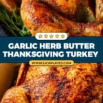 This Garlic Herb Butter Thanksgiving Turkey recipe offers a flavorful and juicy turkey perfect for your holiday feast. Infused with a fragrant blend of fresh herbs, garlic, citrus, and butter, the turkey is roasted to golden perfection, ensuring tender, succulent meat and crispy skin that will impress your guests.