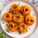 I personally love a generous sprinkle of freshly chopped scallions and cilantro to brighten the rich noodles. If you want some extra crunch, toasted sesame seeds or crushed peanuts can be lovely additions, giving texture contrast and nutty depth. A squeeze of lime on top is wonderful if you want a little extra zing!