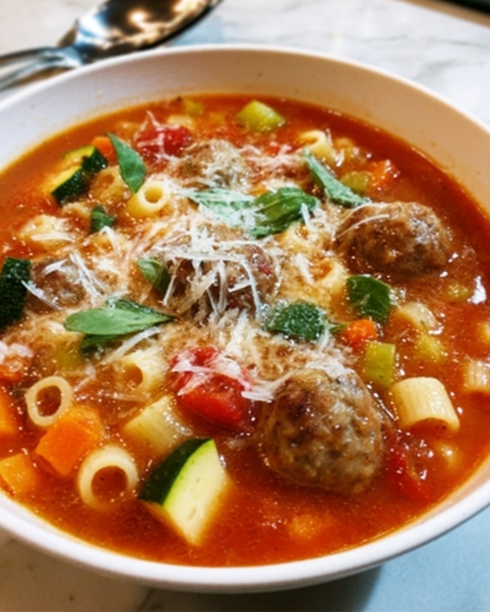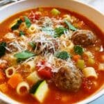 Reheat the soup gently on the stovetop over medium heat to keep the meatballs tender. If you’ve stored the pasta separately, add it just before serving. This way your soup tastes fresh, and nothing gets mushy or overcooked. I sometimes pop it in the microwave for a quick lunch, just stirring halfway through to heat evenly.
