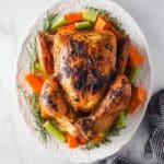 - Rest and Prepare for Broil: Open the lid carefully and let the turkey rest inside the pot for 5 minutes to cool slightly before transferring it to a large baking sheet.