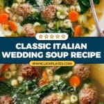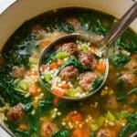 This classic Italian Wedding Soup features tender meatballs simmered in a flavorful broth with vegetables, pasta, and fresh spinach, finished with a sprinkle of Parmesan cheese for an authentic, comforting experience.