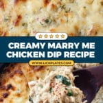 - This rich, cheesy Marry Me Chicken Dip combines the classic flavors of the popular Marry Me chicken dish into a creamy, crowd-pleasing dip.