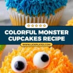 For special occasions, I display these Monster Cupcakes on a tiered cake stand, arranging colors in rainbow order—my kids think it looks like a monster parade! You can also place them in themed cupcake liners matching your color scheme and scatter confetti or monster stickers around the serving tray for extra flair.