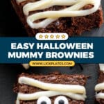 - Add Candy Eyes: Place two candy eyeballs on each brownie piece on top of the icing bandages to create the look of mummy eyes.