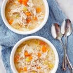 This One-Pot Chicken and Rice Soup Recipe freezes beautifully if you want to stock up. Just freeze in portion-sized containers and thaw overnight in the fridge before reheating gently on the stove.
