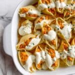 - Serve: Remove baked stuffed shells from oven and drizzle generously with the sage cashew cream before serving.