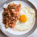 If you end up with leftovers (and that sometimes surprises me because we usually eat it all up!), store the hash in an airtight container in the fridge. It keeps well for up to 2 days without losing much of its texture or flavor.