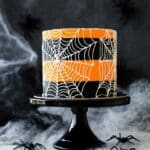 • This Spiderweb Cake is an ideal festive treat for Halloween celebrations with its rich black cocoa and striking orange frosting.