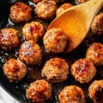 I reheat leftover meatballs in a skillet with a splash of water or extra glaze to keep them moist, covering the pan to warm evenly. Microwaving works too if you’re in a hurry, but the skillet method keeps the texture closer to freshly made.