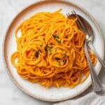 This Sweet Potato Pasta Sauce with Spaghetti is a creamy, nutritious, and flavorful vegan dish perfect for a comforting weeknight meal. The sauce blends roasted sweet potatoes and smoky red bell peppers, enhanced with aromatic sautéed onions and garlic, creating a delightful, healthy alternative to traditional pasta sauces.