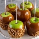 I haven’t tried freezing caramel apples personally, as the texture of the apples tends to change when thawed, becoming a bit mushy. If you want to prep ahead, I recommend storing them refrigerated instead and enjoying them fresh within a few days.