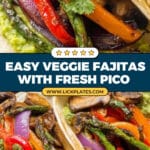 Delicious and colorful Veggie Fajitas featuring a medley of charred mushrooms, onions, peppers, squash, and zucchini, served with fresh pico de gallo, creamy crema, shredded cheese, and warm flour tortillas. This vibrant and hearty vegetarian meal is perfect for a quick and flavorful dinner.
